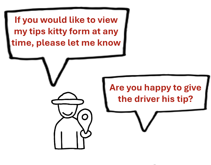 - Organising a Tips Kitty helps the customers focus on enjoying the tour